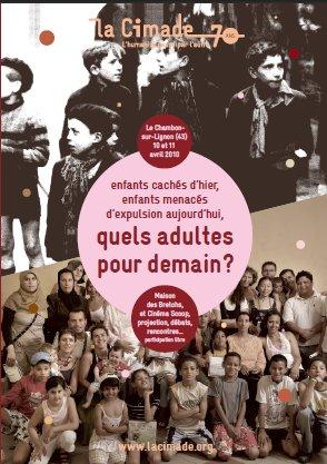 Enfants cachés d’hier, enfants menacés d’expulsion aujourd’hui, quels adultes pour demain? Projection, débats, rencontres… et participation libre Maison des Bretchs, et Cinéma Scoop, Le Chambon sur-Lignon (43) 10 et 11 avril 2010 Organisé par La Cimade Pendant la seconde guerre mondiale, à l’appel des pasteurs, des centaines de réfugiés, souvent juifs, furent cachés dans des fermes du plateau Vivarais-Lignon, au nord des Cévennes. La plupart échappèrent à la déportation. La Cimade ouvre au Chambon-sur-Lignon, en juin 1942, une maison, le Coteau Fleuri, pour accueillir des personnes sortant des camps d’internements, en prévision d’un passage clandestin vers la Suisse. Aujourd’hui, La Cimade défend les droits des migrants. Pour son 70e anniversaire, l’association vous invite à faire une escale au Chambon-sur-Lignon, pour deux journées sous le signe de l’enfance, le 10 et 11 avril 2010. Non pas pour comparer les deux époques. Mais pour mettre en perspective les destins d’enfants qui, à deux moments d’histoire différents, ont à subir le rejet de la société dans laquelle ils ont grandi. Réfléchir à l’histoire des enfants cachés durant la seconde guerre mondiale nous invite à nous questionner sur les réalités actuelles vécues par les enfants expulsables. Quels adultes vont–ils devenir ? Et quelle société s’apprête t-on à construire ? Quand certains enfants se voient marqués du sceau de l’indésirable, n’est-ce pas notre propre humanité qui est en danger? Site : http://www.lacimade.org Programme : suivre le lien ci-dessous. | ||