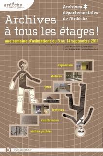 Madame, Monsieur, A l'occasion de l'ouverture de leur bâtiment agrandi et rénové, les Archives départementales de l'Ardèche proposent une semaine d'animations intitulée "Archives à tous les étages!" du 9 au 18 septembre 2011. Une exposition, des visites guidées, des conférences, des lectures d'archives mais aussi des ateliers de découvertes des métiers, des jeux pour les enfants vous seront proposées durant ces journées (dont deux week-end consécutifs). Soucieux de toucher le plus grand nombre de personnes et connaissant l'intérêt que votre association porte aux Archives départementales, je me permets de vous solliciter pour diffuser auprès de vos adhérents et des membres de vos réseaux la publicité ci-jointe. Dans l'attente de vous rencontrer sur l'une des activités proposées, je vous prie de croire, Madame, Monsieur, en l'assurance de ma considération distinguée. Corinne PORTE Directrice des Archives départementales de l'Ardèche Place André-Malraux 07000 PRIVAS Tél. : 04.75.66.98.00 www.ardeche.fr | ||