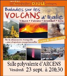 Soirée organisée par l'association Arcade avec le concours de l'association Djulé et la participation du Centre Haroun Tazzief Salle des Fêtes d'Arcens vendredi 23 septembre 20 h 30 Projection de la vidéo "Balades sur les volcans d'Italie" : < Discussion sur les volcans d'Italie et des Boutières Pot de l'amitié Participation aux frais 5 euros (adultes) | ||